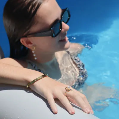 ✨Styling Tip: Pair the Oasis Ring with the Mira Earrings and the Ripple Cuff for a softly sculpted gold story that flows like sunlight over water. Style with a backless ivory maxi dress, golden bronzer, and tousled hair for a coastal goddess moment — serene, sensual, and full of quiet confidence.