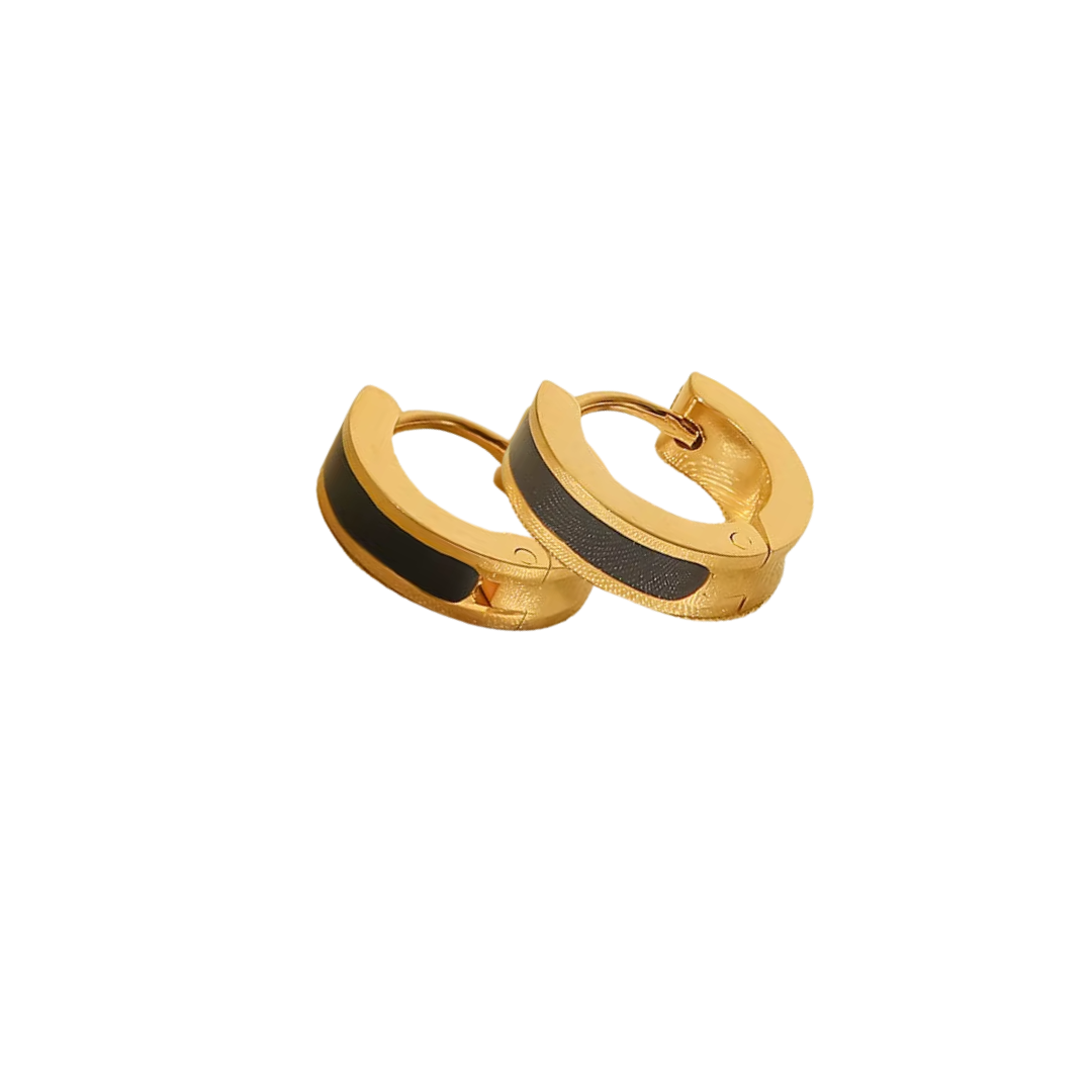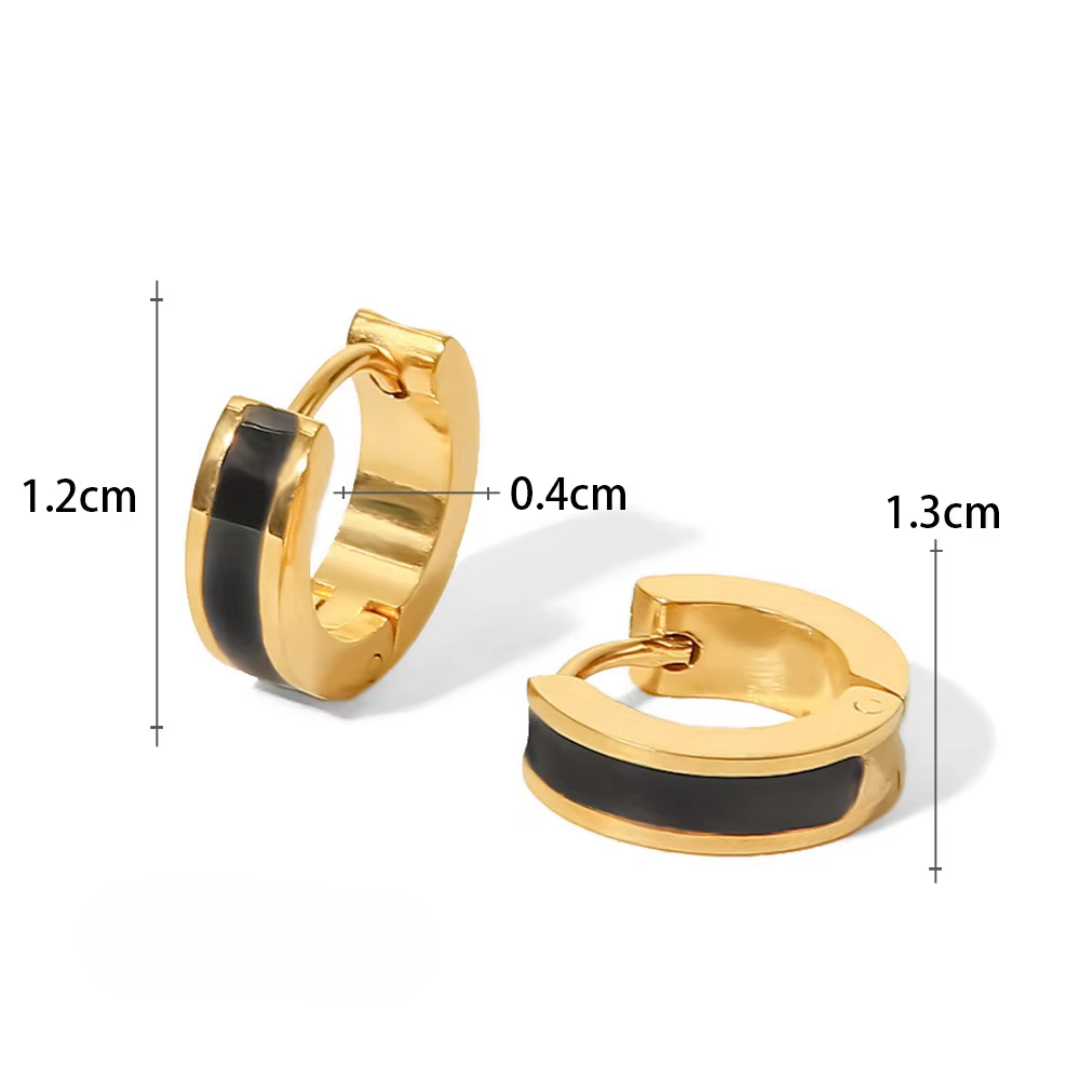 Bold, Minimal, Iconic: Featuring glossy black enamel wrapped in 18K gold plating, these huggies are your go-to for effortless contrast and instant cool.