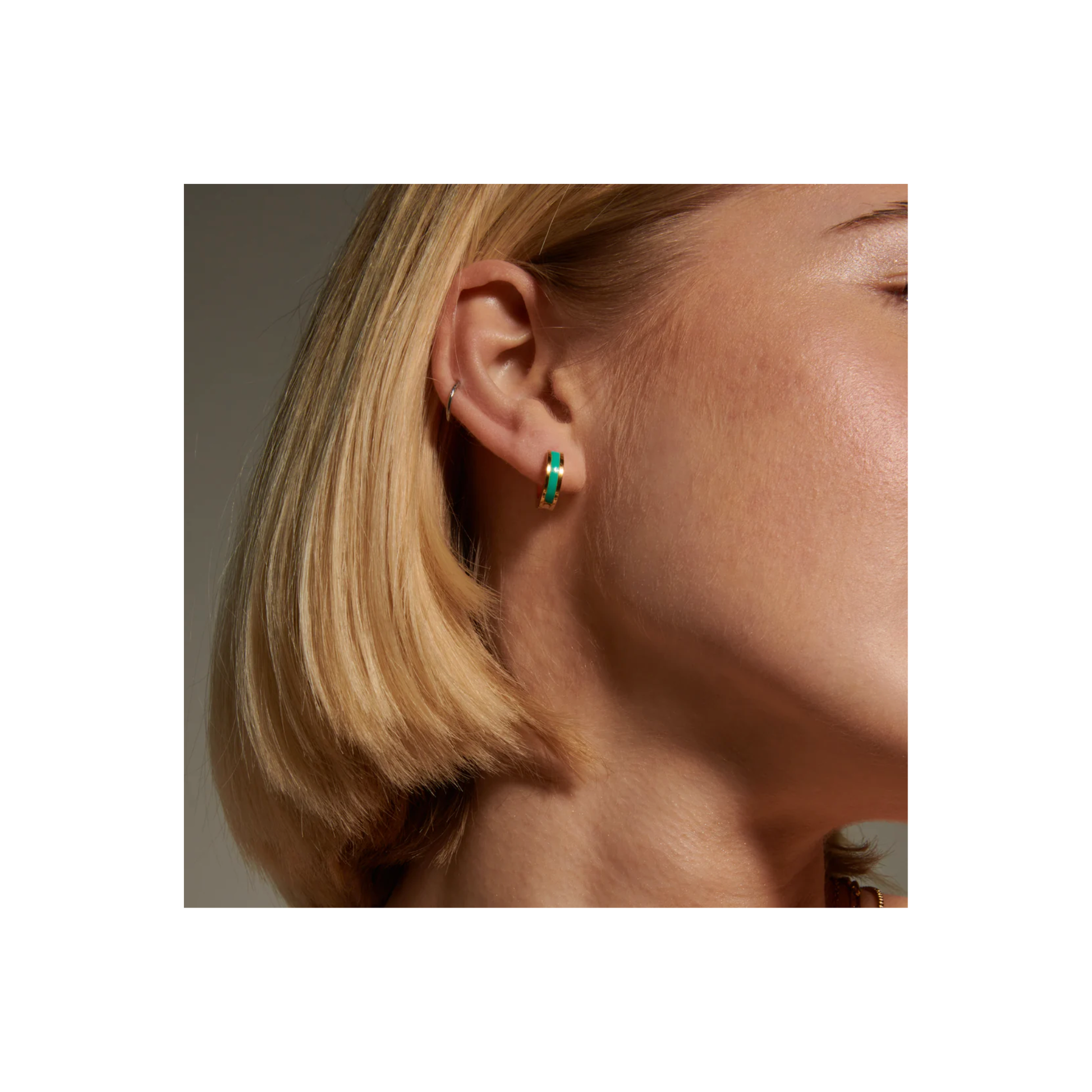 Ocean Energy: A striking turquoise enamel inlay wrapped in 18K gold plating — these huggies are like a tiny vacation for your ears.